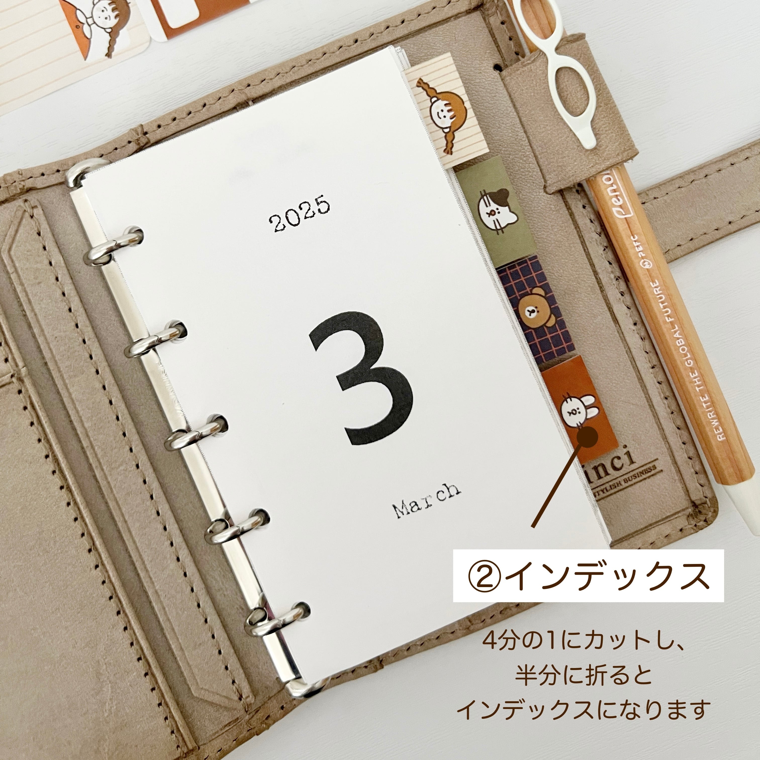 カットすると、インデックスやミニ付箋として楽しめます!(写真のように、ご自身でカットをお願いします✂️)